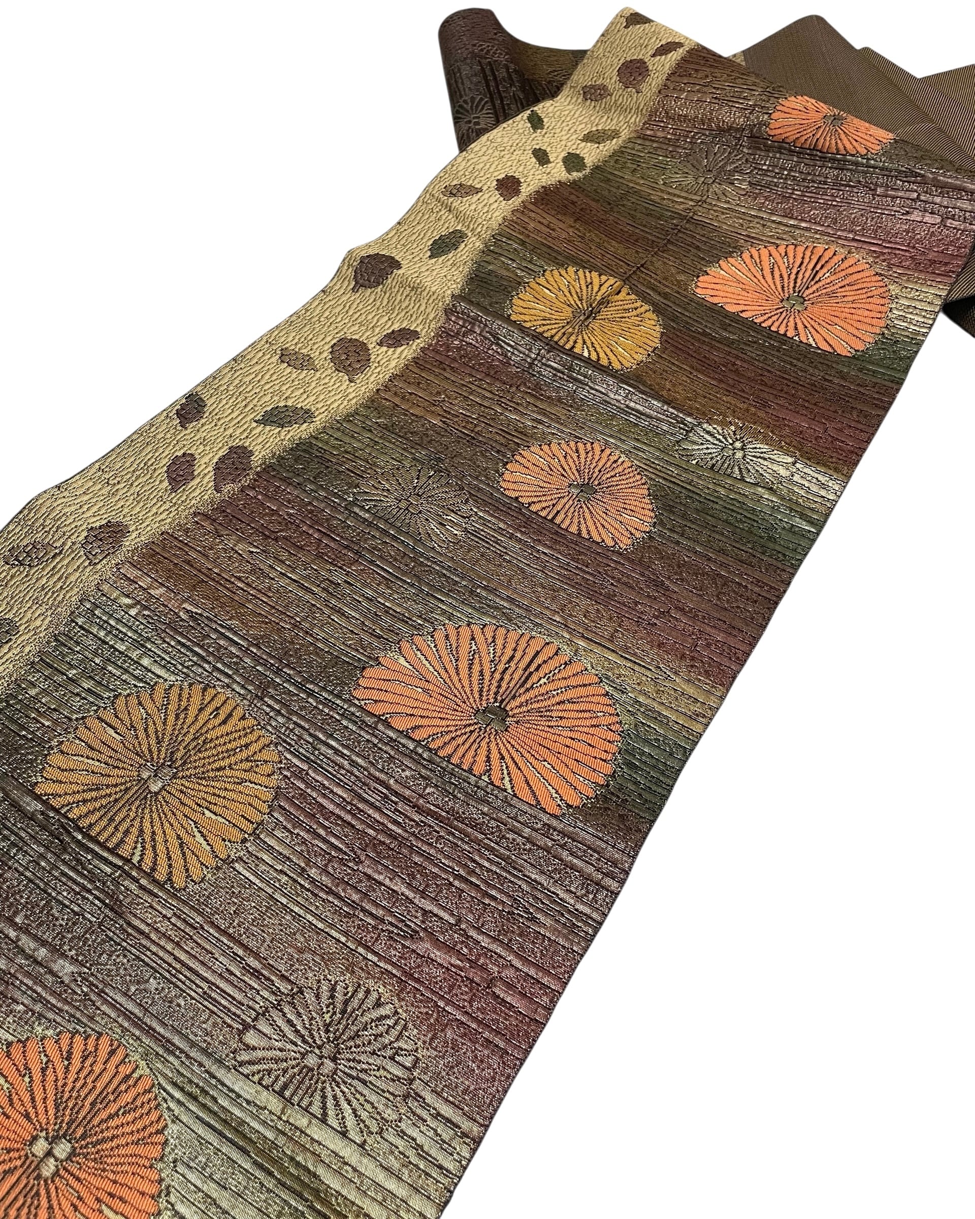 松ぼっくりと毬栗柄 名古屋帯