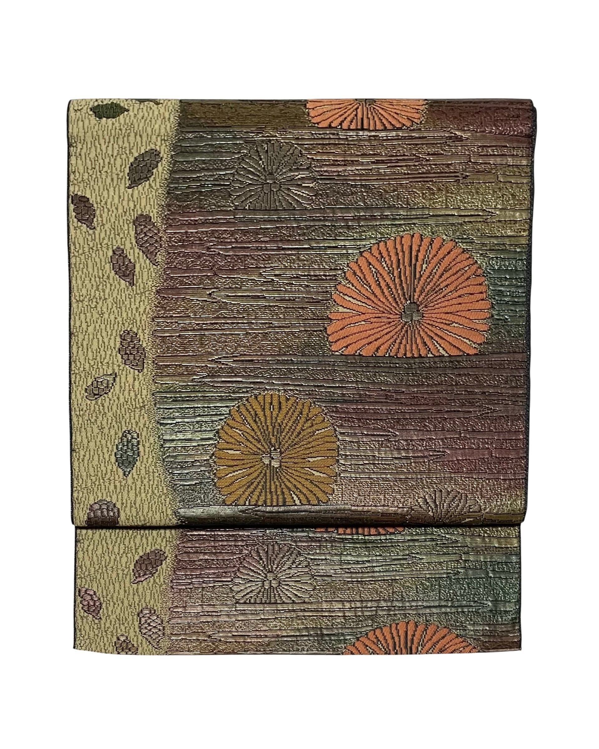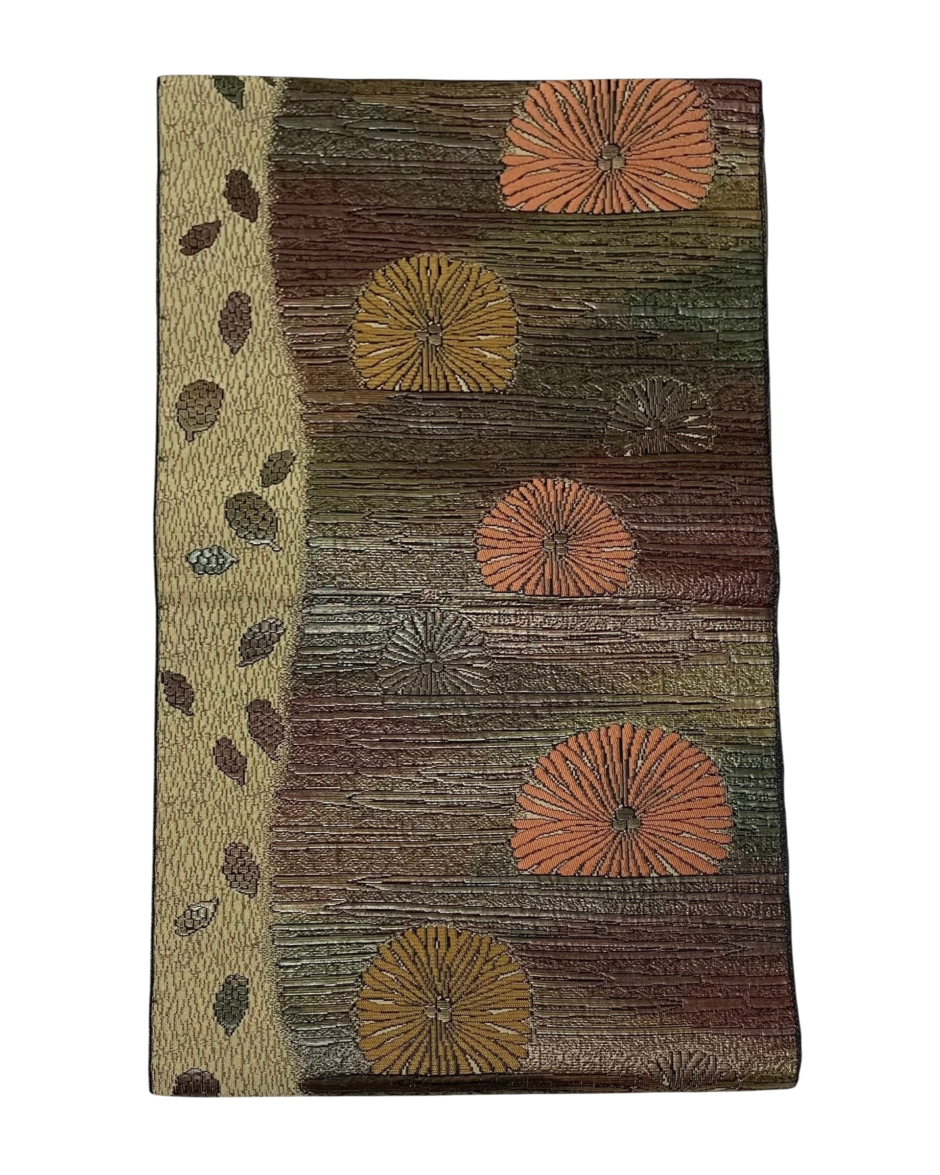 松ぼっくりと毬栗の秋らしいデザインの名古屋帯です。八寸で薄めの生地感なので、単衣にも抜群です!