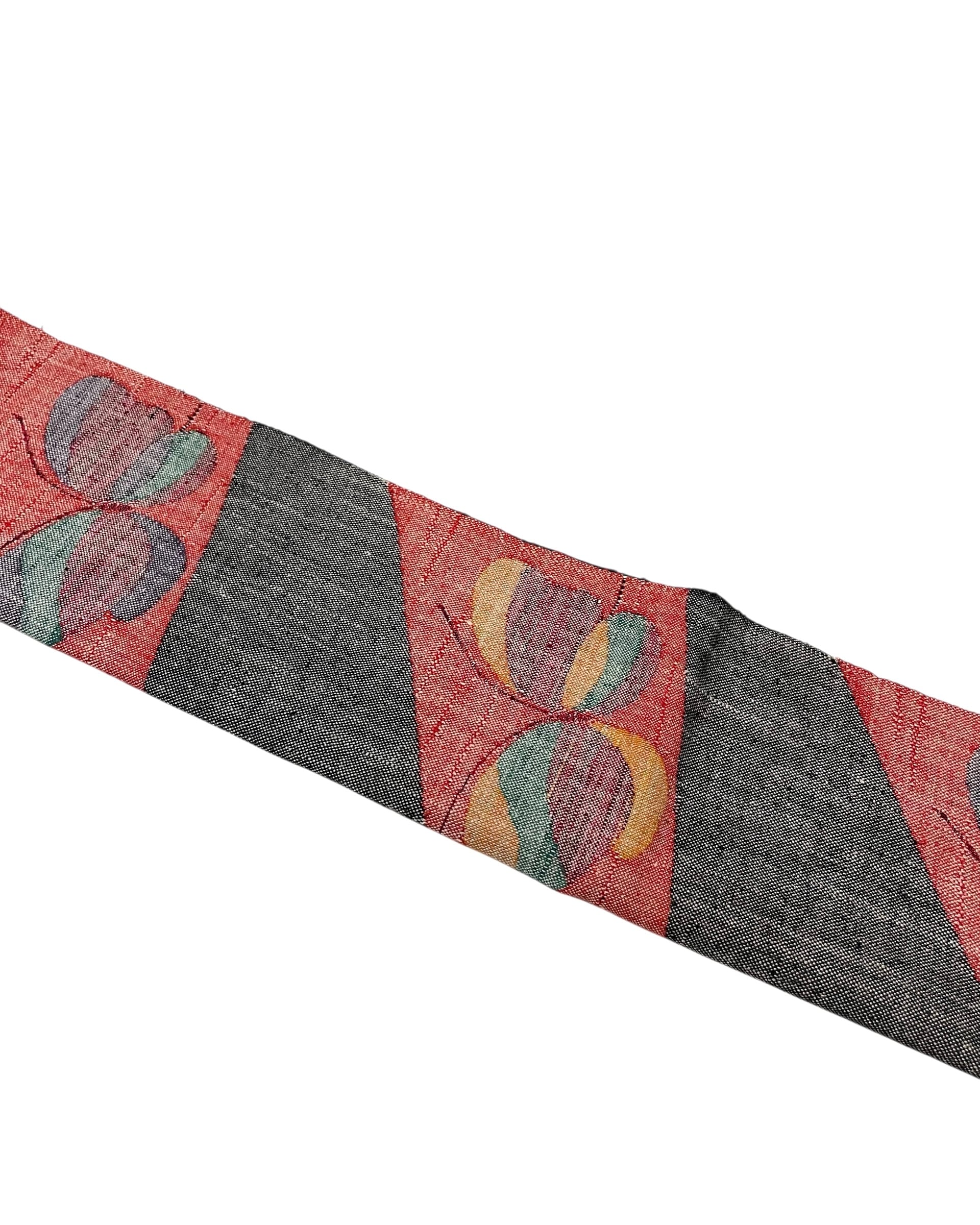 幾何学に蝶の織り出し模様がおしゃれな名古屋帯です。八寸なので袷はもちろん、単衣着物にも使いやすいデザインです。