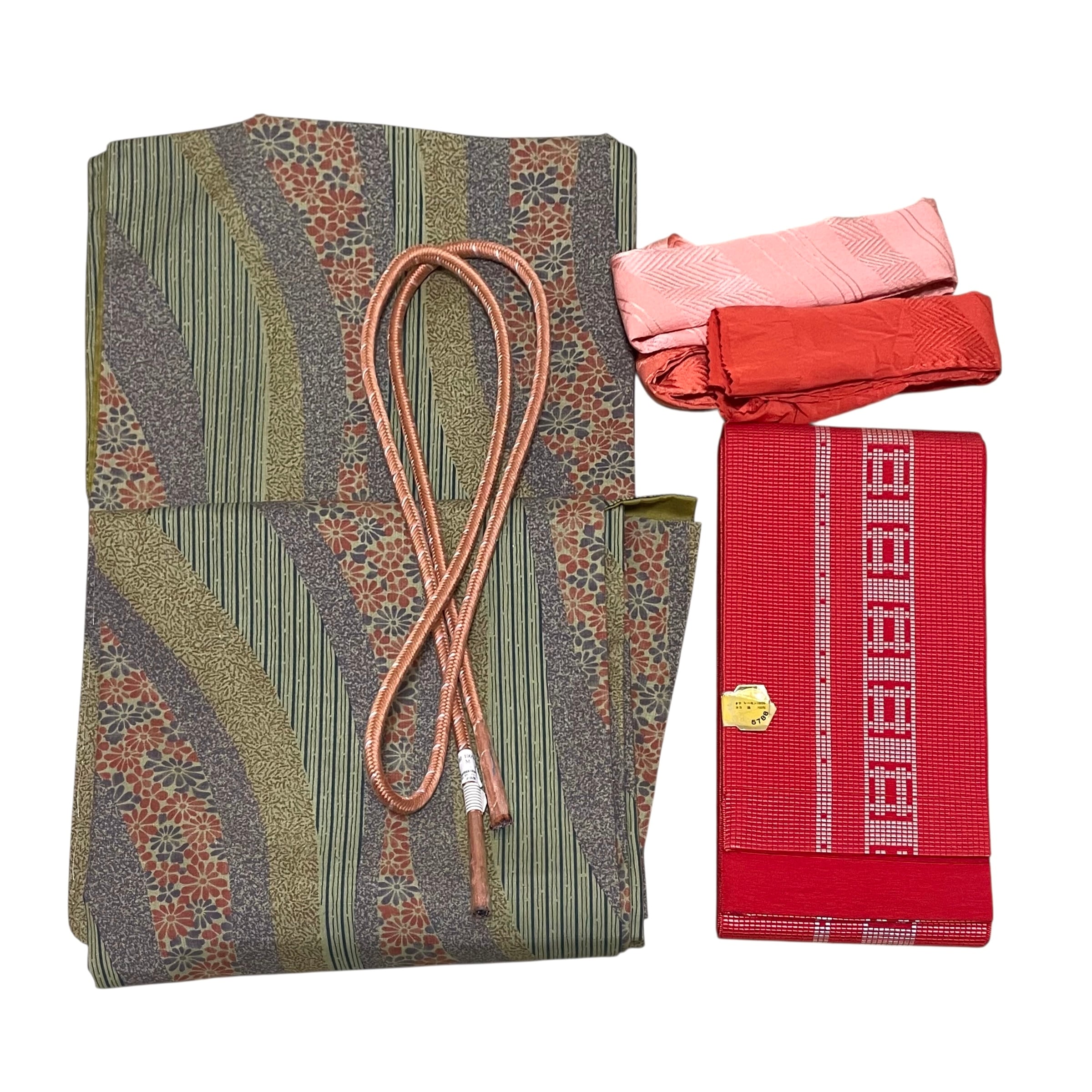 こちらは【着物・半幅帯・帯揚げ・帯締め】の4点セット販売です。