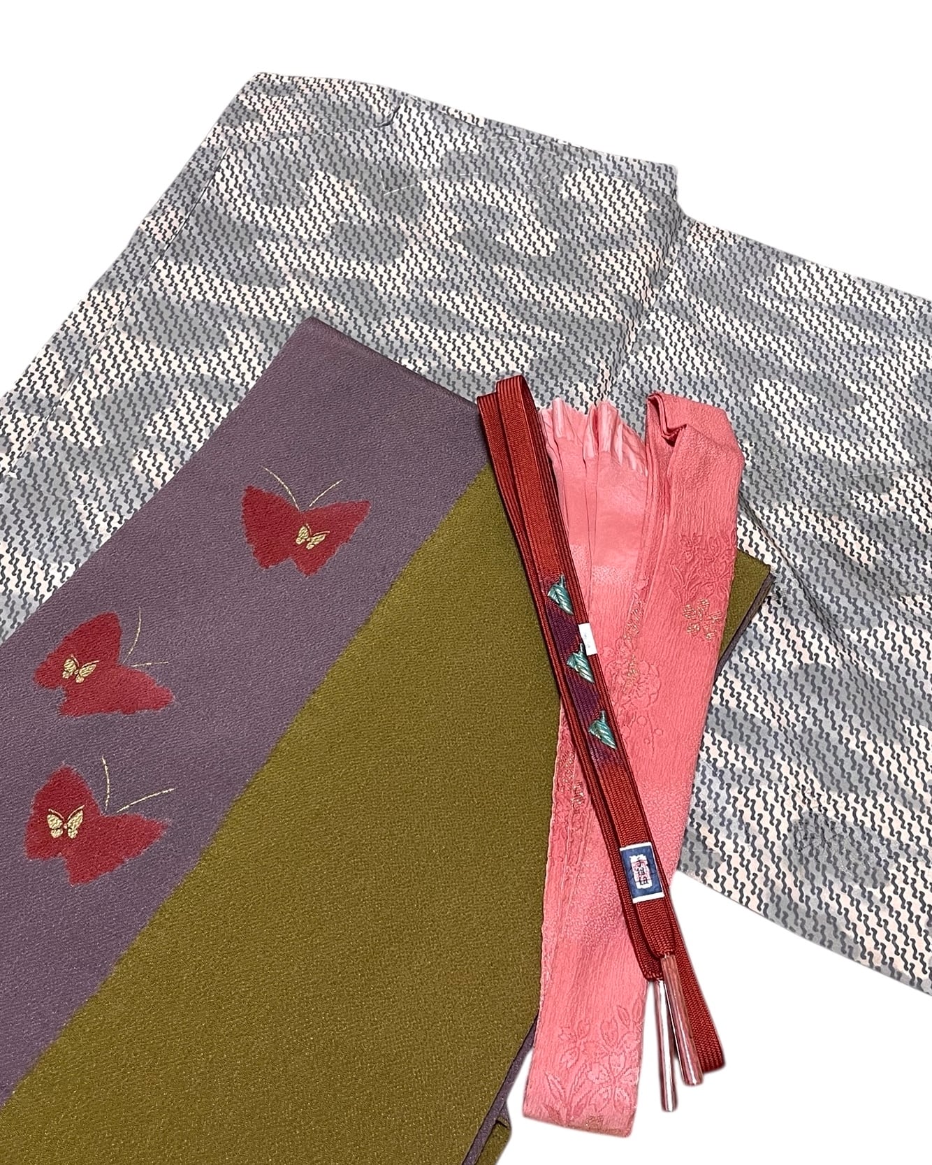 こちらは【着物・名古屋帯・帯揚げ・帯締め】の4点セット販売です。